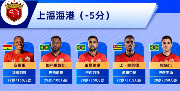 上海海港五外援均无五大联赛履历,他们主要效力于葡超、土超、巴甲,亚洲地区联赛